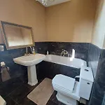 Et badeværelse med et badekar og en bruser er også til rådighed.